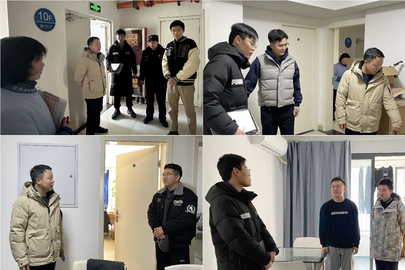 1月26日至28日,学院会同党委研工部、后勤保障部及各园区物业,深入研究生公寓开展宿舍安全专项排查。研究生辅导员薛同宣针对学生宿舍存在用水用电、防火安全以及环境卫生等方面的问题提出安全指导:要注意整理电器线路、控制使用功率,严禁线路杂乱,乱拉乱扯;增强消防防火意识,安全出口和疏散通道是“生命通道”,宿舍内物品摆放不可堵塞门、窗,不得在走廊、过道上堆放杂物,务必确保消防疏散通道畅通无阻,提高安全防护意识,构建文明宿舍环境。