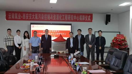 立足于国家“资源回收与循环利用”和“碳中和”背景下的环保技术重大需求,以加速科技成果转化、推动产学研深度融合为目的,4月8日上午,云南氟业环保科技股份有限公司与西安交通大学共建“氟污染控制与资源化工程研究中心”揭牌仪式在兴庆校区召开。云南氟业环保科技股份有限公司总经理李志林、技术总监陆兴、行政总监陈梦娇,西安交通大学科研院副院长、产教融合与成果转化处处长陈娟教授、人居环境与建筑工程学院院长许领教授,碳污协同控制与资源化创新团队带头人金鹏康教授及团队成员参加此次揭牌仪式。