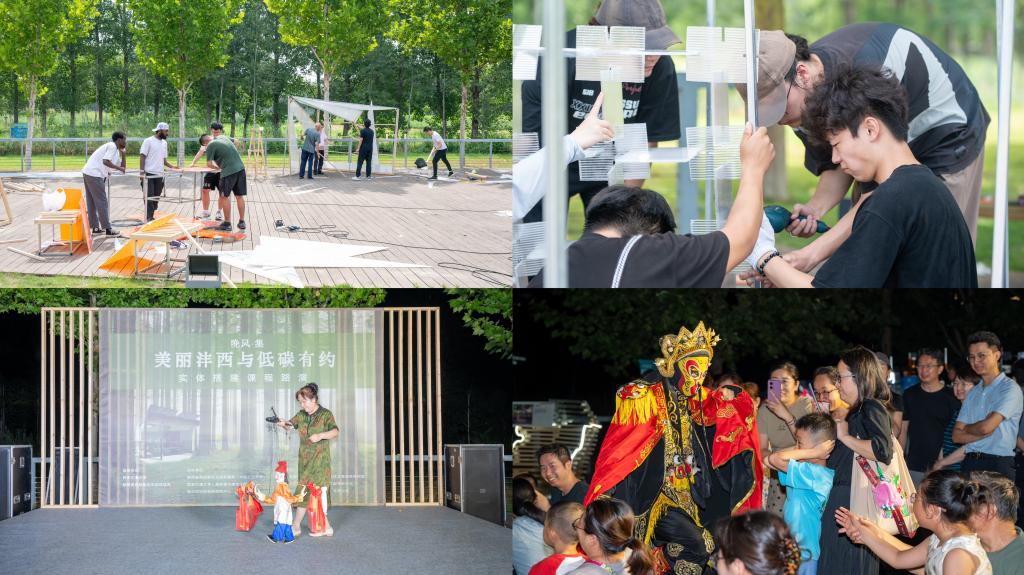 本次活动延续并进一步拓展了西安交大人居学院建筑学一、二年级实践课程,运用政校企融合组织开展教学的模式,同时也尝试了校际教学合作交流的可能性,展出了西安交通大学人居环境与建筑工程学院和西安美术学院建筑环境艺术系师生们搭建的八组由环保材料构建的低碳、可拆除、无污染构筑物作品。这些构筑物造型独特而富有趣味性,融合了零碳盒子、中深层无干扰供热技术、水肥一体化设备、农特产品等低碳技术和产品的展示功能。活动面向全体市民开放,同时结合民俗与非遗文化进行了互动式、趣味性展演,让人们在轻松愉快的氛围中认知低碳、体验低碳、践行低碳。本次活动也是沣西新城打造低碳场景的新举措和新模式。