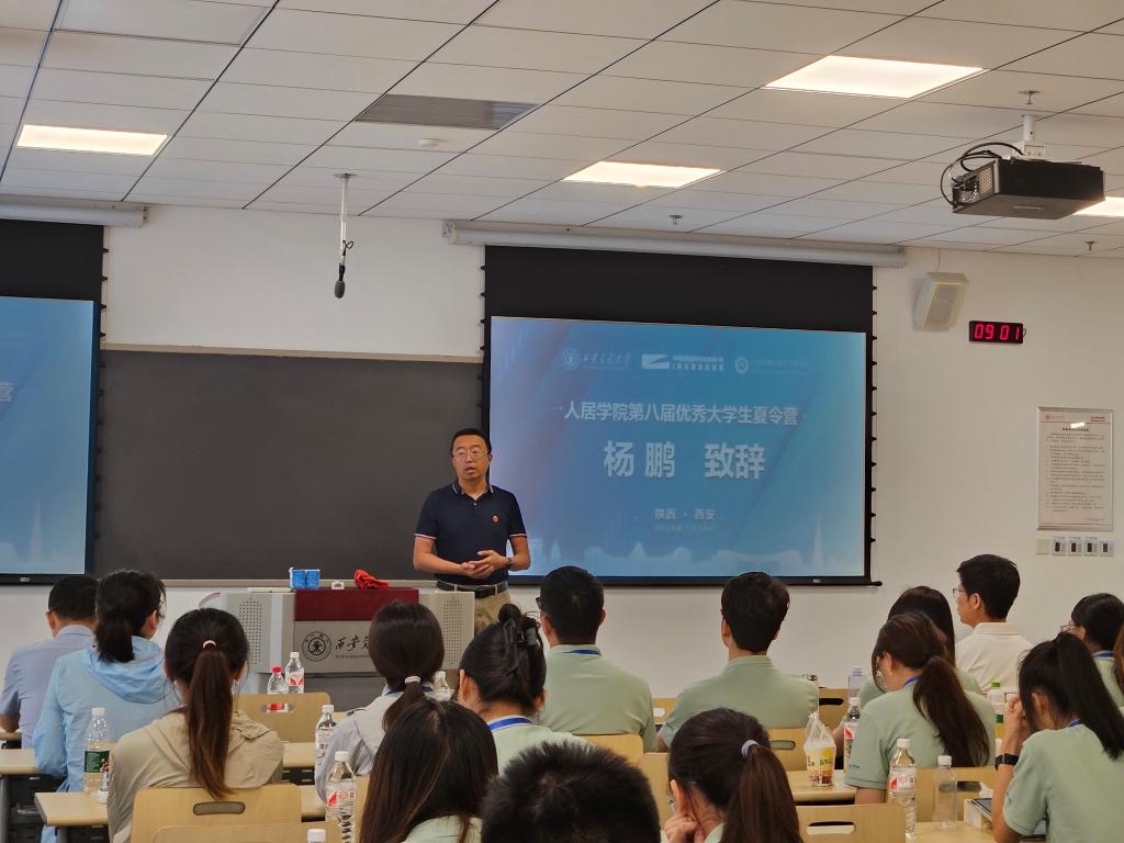 学院分党委书记杨鹏作开营致辞,他代表学院对各位学子的到来表示诚挚的欢迎。他表示,西安交通大学人居学院是最早创办的一个集环境、建筑、土木领域的多学科交叉发展的学院,学院的交叉发展积累和平台将为学生的综合发展提供帮助。他鼓励各位营员充分利用本次夏令营机会,深入了解人居学院特色和学科方向。他寄语各位营员在未来要牢记自己的身份,在祖国的各行各业奉献自己,成为祖国的栋梁之才。