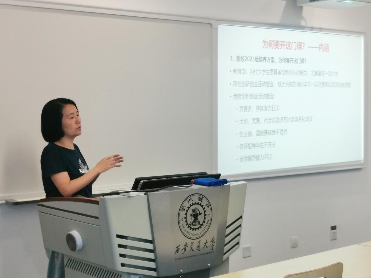 同时,她还从“通识课—专业课”融合视角,对《创新创业指导》课的学科内、学科间统筹提出了期望,希望老师们能够在备课、教学过程中,结合自身课题构思创业项目,并从市场分析、战略投融资、团队管理等多个维度进行实践指导,从而丰富课程内容、扩展实践方法。她还为授课团队提供了创新创业书单,明确了备课任务要求。