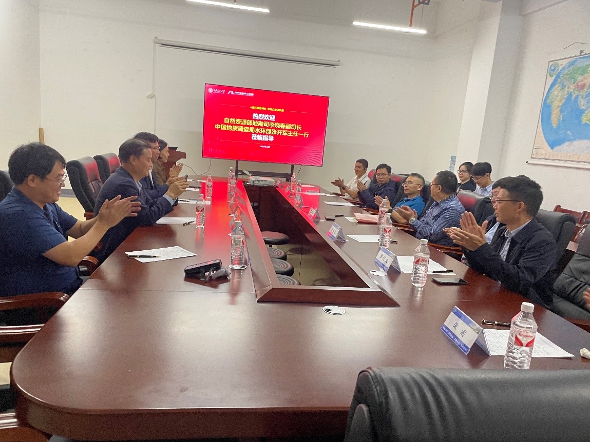 近日,自然资源部地质勘查管理司李晓春副司长、中国地质调查局水环部张开军主任、自然资源部地勘司地勘处张承方一级调研员、中国地质调查局水环部灾害处曹佳文处长、西安地质调查中心地质安全评价室董英主任、水环部环境处干部黄国锐、水环部水文处四级调研员朱阁等一行莅临人居学院及灾害防治与生态修复研究院指导工作。人居学院院长许领、研究院院长张茂省、孙萍萍副教授、冯立助教等参加座谈。