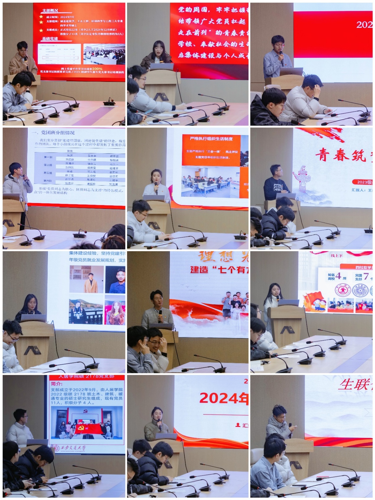 人居学院研究生共11个党支部作年度述职汇报,各党支部工作亮点纷呈,充分展现了党建引领下的蓬勃活力和显著成效。