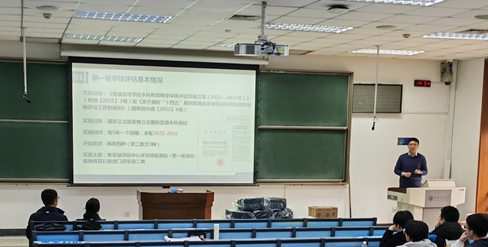 蔡皖龙老师详细介绍了建环专业发展沿革、解读了专业发展方向及本科教学评估要求并给出了考研及就业相关建议。他首先介绍了近期即将进行的本科教育教学审核评估的基本情况及我校本科人才培养的具体举措及要求。接着结合当前行业发展趋势,分析了建环专业的核心课程设置与培养目标,并鼓励同学们在学习过程中注重理论与实践相结合,积极学习热泵及先进能源系统、建筑清洁供能技术、数据中心节能、建成环境控制等行业新兴领域的相关专业知识,为未来的升学深造及职业发展打下坚实基础。