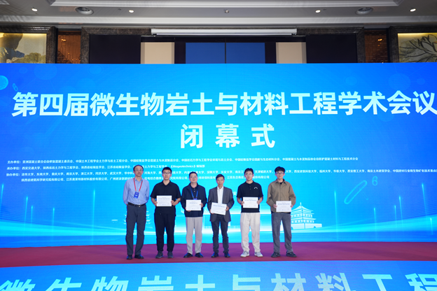 会议闭幕式由会议组织委员会主任、西安交通大学人居环境与建筑工程学院王剑云教授主持,依次进行了《Biogeotechnics》最佳论文奖、第四届微生物岩土与材料工程学术会议研究生论坛优秀报告奖等颁奖仪式,由清华大学程晓辉教授担任颁奖嘉宾。