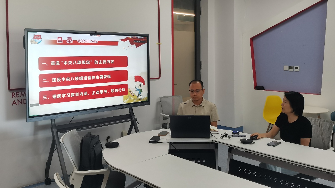 在交流分享环节,支部党员们纷纷结合自身工作实际,分享了对贯彻中央八项规定精神的理解与感悟。石倩谈到,在日常工作中,应时刻设身处地为教师、学生等服务对象着想,坚决杜绝形式主义,以实际行动践行全心全意为人民服务的宗旨。牟瑞欣说,业务流程化有助于提高工作效率,同事间应加强协作、互相帮助,形成高效协同的工作氛围。大家一致表示,将以此次学习教育为契机,以高标准、严要求落实落细各项具体任务,切实把学习成果转化为工作动力,在实际工作中严守纪律底线,弘扬优良作风,以更加饱满的热情、更加务实的态度,推动作风建设常态化、制度化。