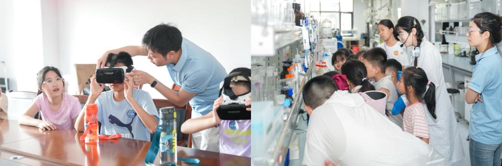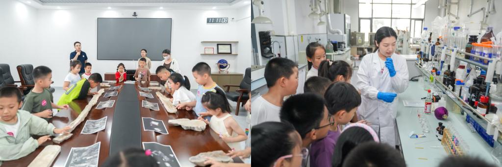 专家讲堂结束后,孩子们集体合影留念,随后在志愿者的带领下,从涵英楼步行至泓润楼,开启“走进实验室”环节。在建筑与土木类实验中,孩子们通过VR眼镜“穿越”至经典建筑现场,亲手触摸细菌矿化修复的混凝土试块,体验土壤透水性实验的趣味。环境类实验室通过“清水小魔杖”酸碱滴定实验、“碳酸钙晶体观察”等项目,让孩子们直观感受化学与生态的奇妙反应。完成全部实验后,孩子们集齐印章并领取专属学员证书,为这场科学探索之旅留下珍贵的纪念。