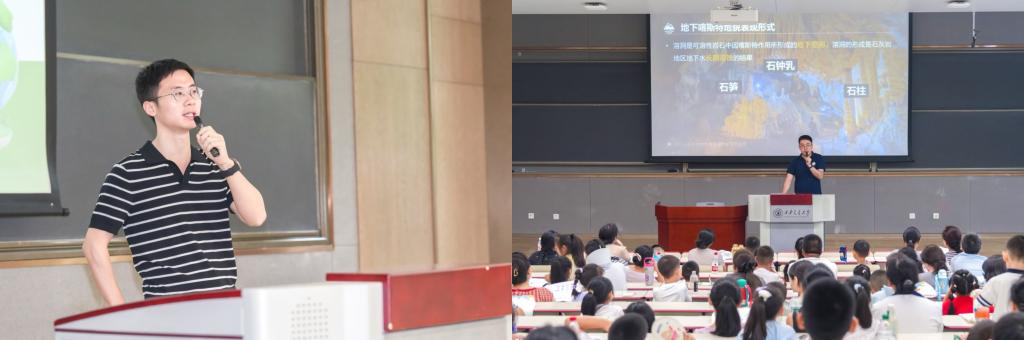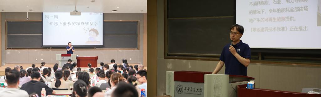 活动伊始,首先进入“专家讲堂”环节。第一会场中,宋慧明研究员以《树木年轮——连接过去和未来的桥梁》为题,展现树木年轮在生态研究中的独特价值;覃蔡清副教授聚焦碳循环,引导孩子们思考低碳生活的意义;张瑞博士以《石头讲故事》为题,通过洞穴沉积物解析气候变化规律。第二会场同样精彩纷呈:王剑云教授通过《魔法细菌——小身材大能量》揭示生物矿化技术的工程应用;马从付高工以传统榫卯与现代桥梁搭建技术为切入点,展示中华建筑智慧;甄蒙副教授通过《神奇的零碳建筑》案例,启发孩子们对绿色建筑的想象。