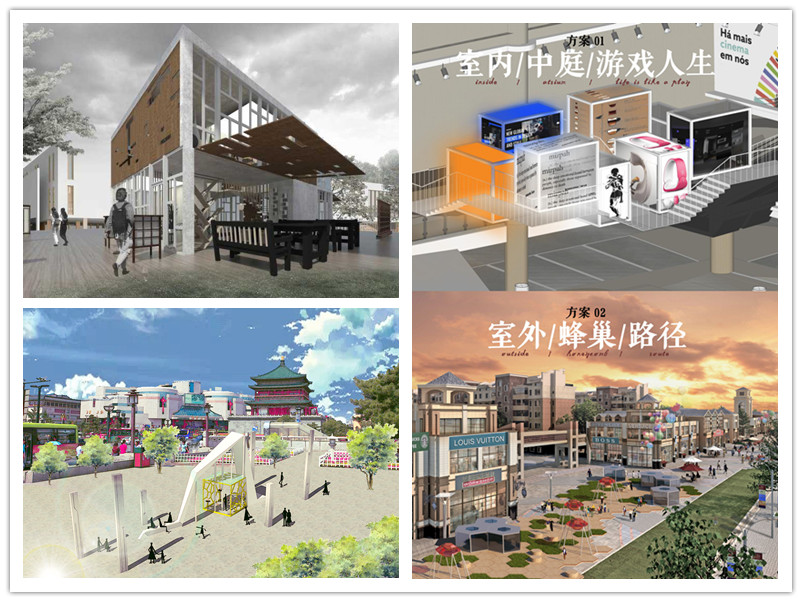 “城市疗养师 Cure of the City”针对城市人群减压空间,设计了六边形的室外减压仓和具有游戏特征的商业中心中庭空间应用模式;“唐艺象-移动装配式空间”以大唐不夜城为背景,提供了以装配式书屋为例的文化休闲可拆装建筑方案;“图书漂流岛”将城市书文化与艺术展示相结合,通过独具特色的艺术造型创造多样休闲空间。