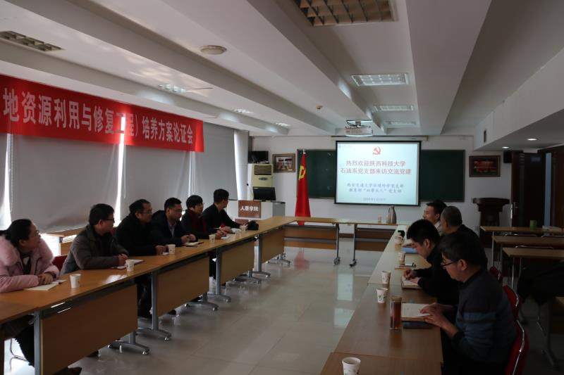 1月11日下午,陕西科技大学化工学院石油工程系党支部书记杨晓武和系主任刘佳洁一行7人访问环境科学支部,环境支部书记吴一平、系主任李旭祥、支部委员以及党员代表接待了来访人员。石油工程支部是陕西科技大学“双带头人”培育支部,也是陕西科技大学基层党组织建设的一个重要示范单位。此次来访主要是考察学习我校“双带头人”支部在党建工作方面的经验与方法。