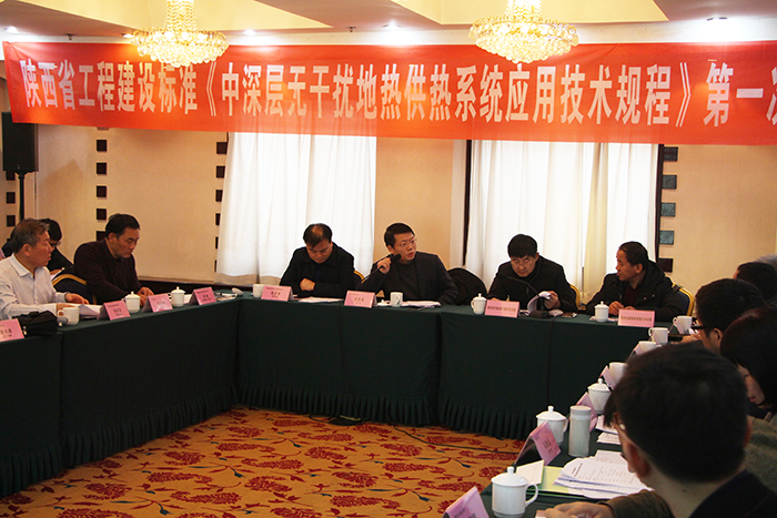 1月6日,陕西省工程建设标准《中深层无干扰地热供热系统应用技术规程》(以下简称《规程》)编制组第一次工作会议在西安交通大学南洋酒店举行。陕西省住房和城乡建设厅建筑节能与科技处处长韦宏利、陕西省住房和城乡建设厅建设标准设计站副调研员谭新来、原中国地质环境监测院副院长中国能源研究会地热专业委员会主任田廷山以及来自国内地热、地质、暖通、给排水、电力、自控等多个领域的权威专家出席会议。会议由西安交通大学人居学院王沣浩教授主持。