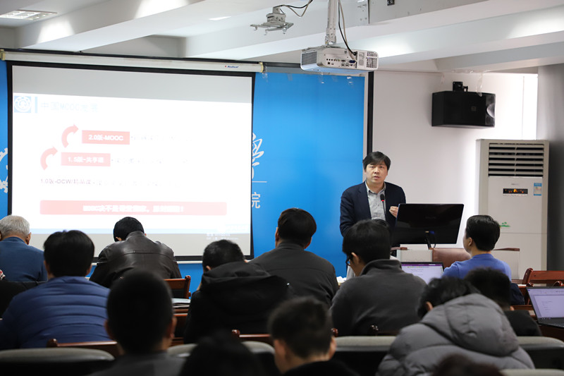 近年来,国家和教育部全面推进教育信息化的发展,信息技术为教育教学发展带来新理念和新动力,使得教育内容、教学方法和模式发生了深刻变革。人居学院在线课程建设刚刚起步,目前有2门课程获得学校立项。为了帮助教师们转变思想,快速入门,学院邀请教务处张俊斌副处长作题为“信息技术驱动下的课堂教学改革实践”的主题报告,进行指导。张俊斌副处长从国家相关政策入手,简要回顾了我国教育信息化的发展历程,就信息技术与教学深度融合、信息技术重构教学的四个维度进行了解读。结合大量的案例,介绍了MOOC、混合式教学的应用情况,使教师全面认识当前高校“课程革命”的主导思想和切实可行的实施路径。同时结合我校的服务与保障机制,张俊斌副处长鼓励老师们结合课程特点,积极开展形式多样的基于信息技术的课堂教学改革。