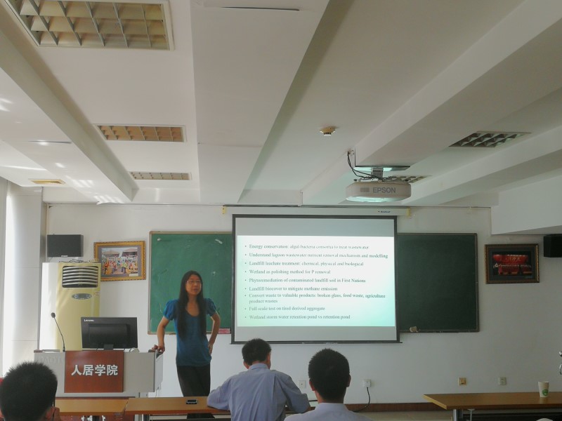 在本次讲座中,Dr. Yuan介绍了在加拿大原始部落地区固体废弃物处理方面的研究,尤其是其采用植物方法处理污染土壤的相关工作,系统讲述了乡土物种用于污染土壤修复所具有的优势、土壤修复机制与效果及其相应的生物生产功能,并与我院师生进行了深入而激烈的讨论。此外,Dr. Yuan还对其研究方向和曼尼托巴大学的招生政策等进行了系统的介绍,讨论了未来在科学研究和学生培养方面合作的可行性。
