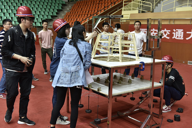 5月23日下午,由西安交通大学教务处、实践教学中心、校团委、人居学院、航天航空学院、崇实书院、文治书院等联合举办的西安交通大学第一届“腾飞杯”大学生结构设计竞赛在思源大学生活动中心成功举行。本次竞赛共有来自8个学院、12个专业的20支队伍报名参赛,经过赛前培训、制作模型、提交计算书等环节之后,最终有15支参赛队伍进入最后的加载角逐。