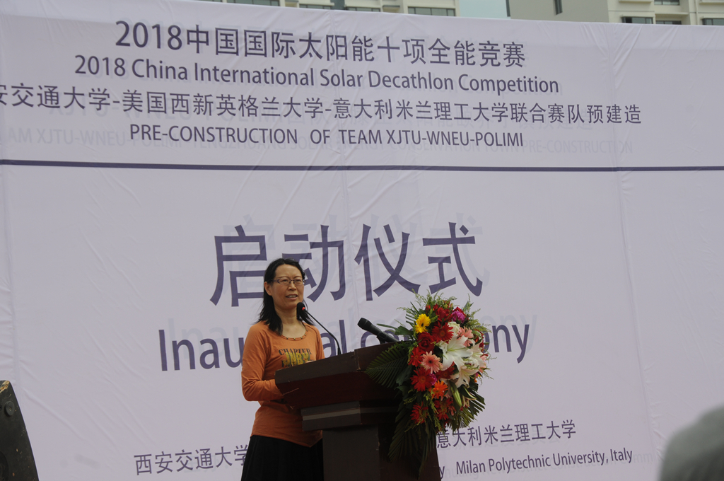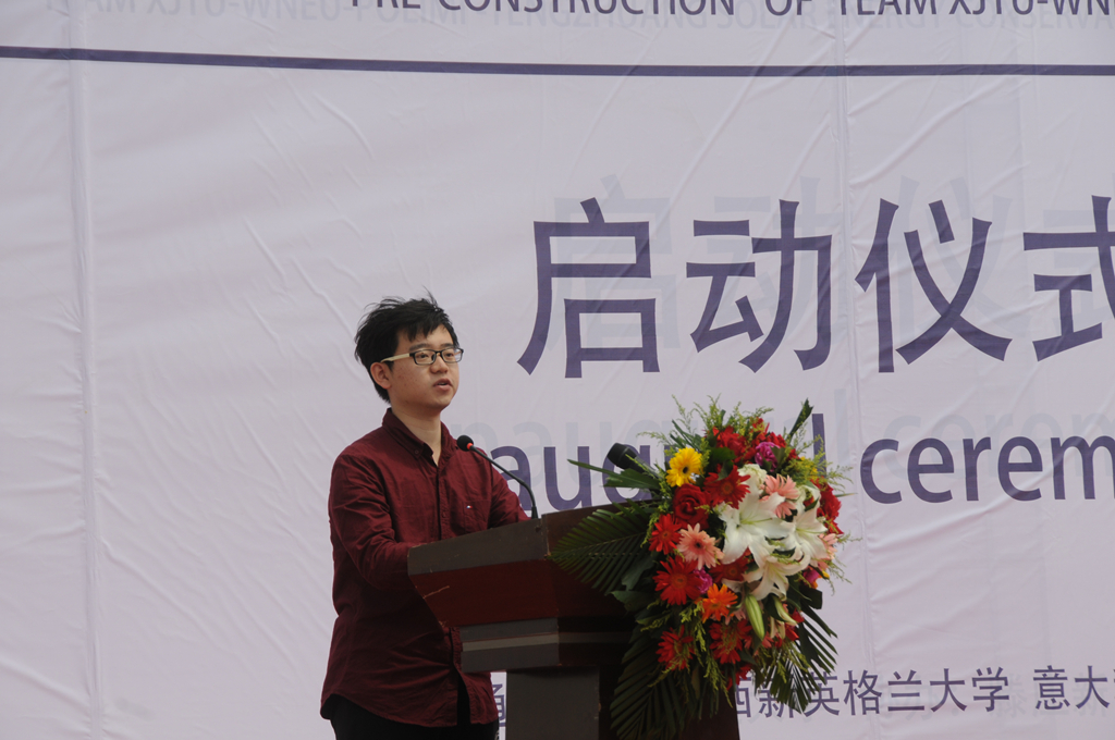 赛队带队老师我校人居学院陈洋教授简述了赛队的发展历程以及各项竞赛工作的准备情况,介绍了西安交通大学-西新英格兰大学-米兰理工大学联合赛队各个组成部分,表达了对德州市政府、大赛组委会、赛队合作方、赞助商以及赛队的老师同学的感谢。并表达了西安交大联合赛队在本次竞赛中的信心。赛队学生代表人居学院建筑学系研究生娄晔也表示此次竞赛对于学生来说是一次难得的锻炼机会,希望能够在这次竞赛中获得更多的学习和收获。