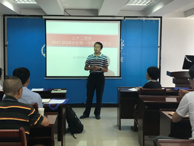 2017年9月14日下午14:30,土木工程系在曲江校区西一楼第二会议室举行了2017-2018第一学期工作会议,进行新学期工作部署。人居学院党委书记杨鹏老师出席了会议。会议由系主任廖红建教授主持,土木工程系全体教师参加了会议。