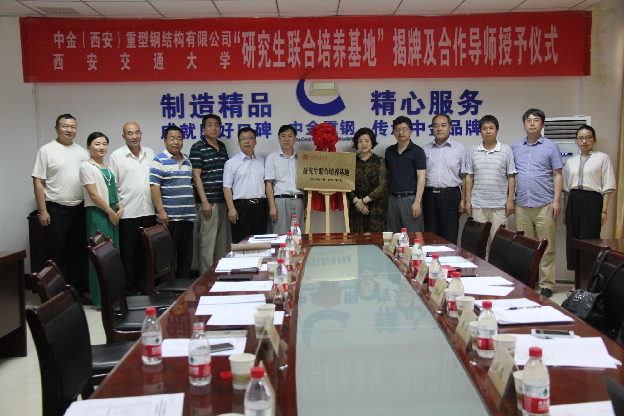 2016年7月7日,西安交通大学与中金(西安)重型钢结构有限公司(中金重钢)“研究生联合培养基地”揭牌仪式在中金重钢会议室隆重举行。研究生院专业学位与实践基地办公室主任郭炜、人居环境与建筑工程学院常务副院长顾兆林教授、副院长马建勋教授、中金重钢董事长牛善忠、总经理于洪宾等相关部门负责人出席仪式并分别致辞,土木工程系副主任杨政、建筑环境与能源应用工程系副主任党政、土木工程系青年教师罗冬参会。