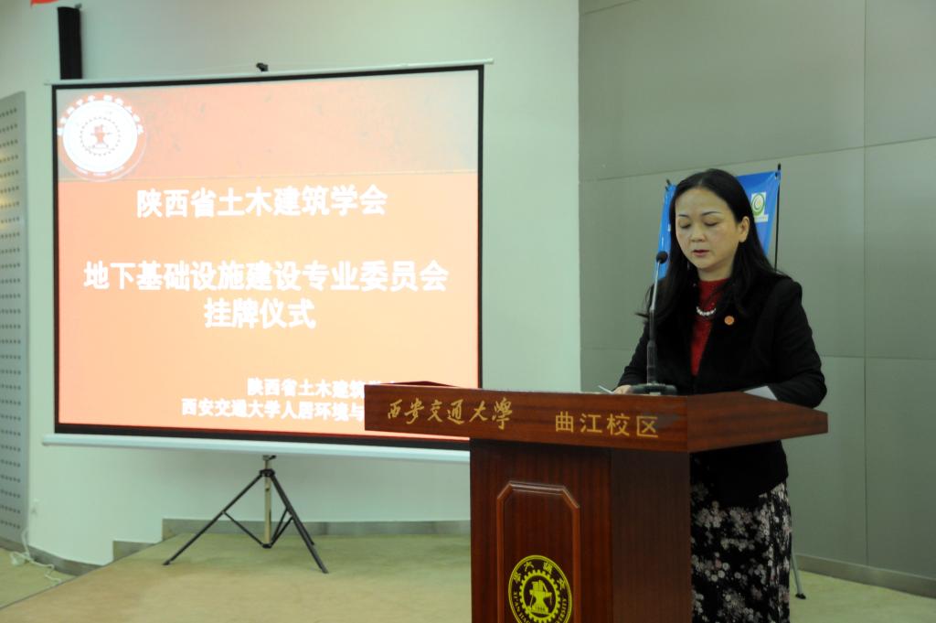 大会首先举行了“陕西省土木建筑学会地下基础设施建设专业委员会”揭牌仪式。由西安交通大学发起,在二十余家高等院校、科研院所、设计单位、工程公司的大力支持下,在陕西省土木建筑学会的领导和指导下,经过半年的筹备于2016年2月2日顺利召开了陕西省土木建筑学会地下基础设施建设专业委员会筹备大会及第一届会员大会,选举产生了第一届组织机构,经学会批准正式成立。周丰峻院士任名誉主任委员、马建勋教授任主任委员。陕西省土木建筑学会易凤华秘书长代表学会宣读了成立批复,西安交大赵军武常委、周丰峻院士、陕西省土木建筑学会易凤华秘书长、中铁二十局雷升祥董事长共同为委员会揭牌。