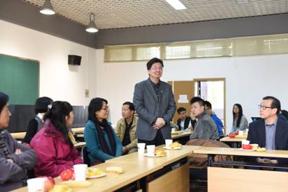 在师生见面茶话会上,人居学院院长顾兆林教授首先代表学院致辞,对返校校友表达了诚挚的欢迎,对建筑学系的发展给予了肯定,并展望了学院交叉学科发展的前景,也希望各位校友加强和学校的互动,对院系的发展建言献策。建筑学系主任陈洋教授就建筑学系的发展沿革、教学体系与教育成果以及学科发展规划向大家进行了简要介绍。99级校友王山和93级校友陈小军代表校友发言,表达了对母校的眷恋和感激,并对建筑学系近年来取得的成绩感到由衷的欣喜与自豪。其后,建筑学系向校友赠送了特制的纪念品——一枚刻有校徽校训、镶嵌有交大梧桐木的吊坠。茶话会后,校友和建筑学教师合影留念。