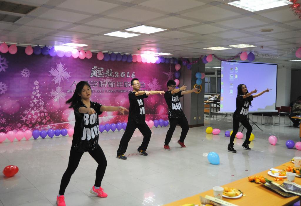 首先,由张恒睿、胡雪涛两位DANCE男神和他们的舞伴——来自能动学院的彭雨薇和机械学院的杨宛谕带来交谊舞《你被写在我的歌里》,欢快的旋律、优美的舞姿,瞬间点燃了现场师生的热情;吉他乐手贺雷刚、李尚力同学弹唱《莉莉安》,勾起了大家那年那时那天的回忆;“在我心中,曾经有一个梦”,环境系邱临静、张海伟、宁有丰、宗保云四位老师以一首《真心英雄》唱出了坚强、正直、勇敢的英雄梦;硕5122班李珂、曹盼盼同学的相声《古学新说》以幽默机智的语言为大家诠释了古典文学的新说辞;校吉他社欧阳可琛、贺思哲等同学带来的精彩曲目《平凡之路》和硕5071、5122班庞海燕、徐依蕾、李儒等同学的歌曲串烧《一次就好》赢得了观众的阵阵掌声;葛生斌、张博、李瀚瑛几位同学的舞蹈串烧《Mix it up》和王珊、李儒、曹盼盼同学的现代舞《喜欢你》更是劲爆全场、活力四射;吴一平老师以铿锵有力的朗诵诠释了《将进酒》的豪迈之气;张晓帆同学的笛子独奏《我的祖国》,以传统乐器的神奇魅力表达了莘莘学子的爱国情怀;硕5071和5122班精心编排的小品《原来是个坑》以幽默的表演方式让观众不时捧腹大笑;罗冬、白涌滔、徐晗三位老师合唱《恋曲1990》和硕4071班徐昊、 贺沅平、李宗文、尚世力几位同学的歌曲串烧演唱生动、感情真挚,博得现场观众的一片喝彩;“时间都去哪了,还没好好感受年轻就老了”,伴随着张博同学的《时间都去哪儿了》,联欢会也进入尾声。