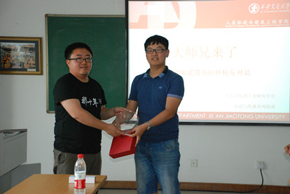 座谈会后,校友们参观了学院。并受团工委研究生会的邀请出席参加了学院研究生主题活动“对话与传承-大师兄来了”,跟学弟学妹们就建筑行业现状、建筑设计前沿、职业发展规划等话题进行了交流,为师弟师门提供了行业领域、就业发展的社会讯息,部分校友更表示其企业愿意为同学们提供实习和工作岗位。整个活动,气氛轻松热烈,师兄弟情谊浓烈。在研究生会同学送上代表学弟学们热情的纪念水晶以及热烈的掌声中,校友活动圆满结束。