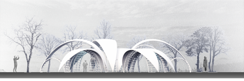 《冰华之下》寓意在一朵悄然绽放的寒冬之花下另有一番天地。设计从极地居住文化和自然环境中汲取灵感,将极地传统居住形式“冰屋”,和高山雪原中的“雪莲花”相结合,既保留了极地传统居住空间的形态,又打造了一片片灵动的花瓣,打开了闭塞的室内空间、扩展了其功能。作品外形像一朵盛开的雪莲花,由于近年来全球变暖,雪莲花的生存受到威胁、数量逐年减少,设计时将这一意向呈现在作品中,在让人们观赏作品的同时,产生对极地环境问题的关注与思考。