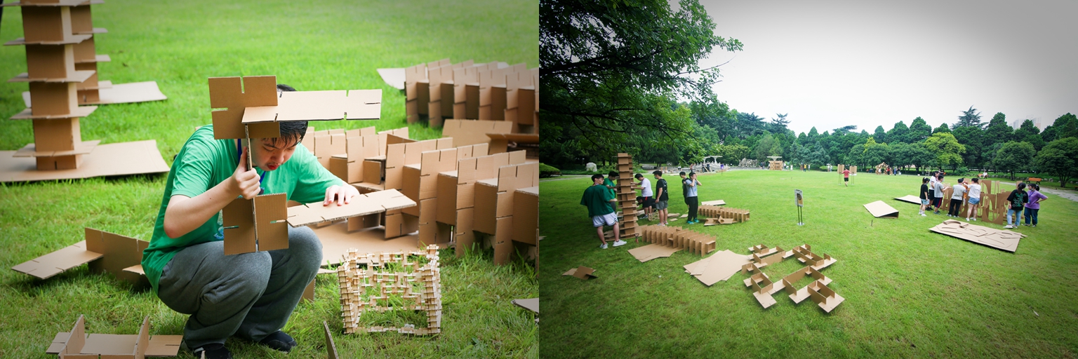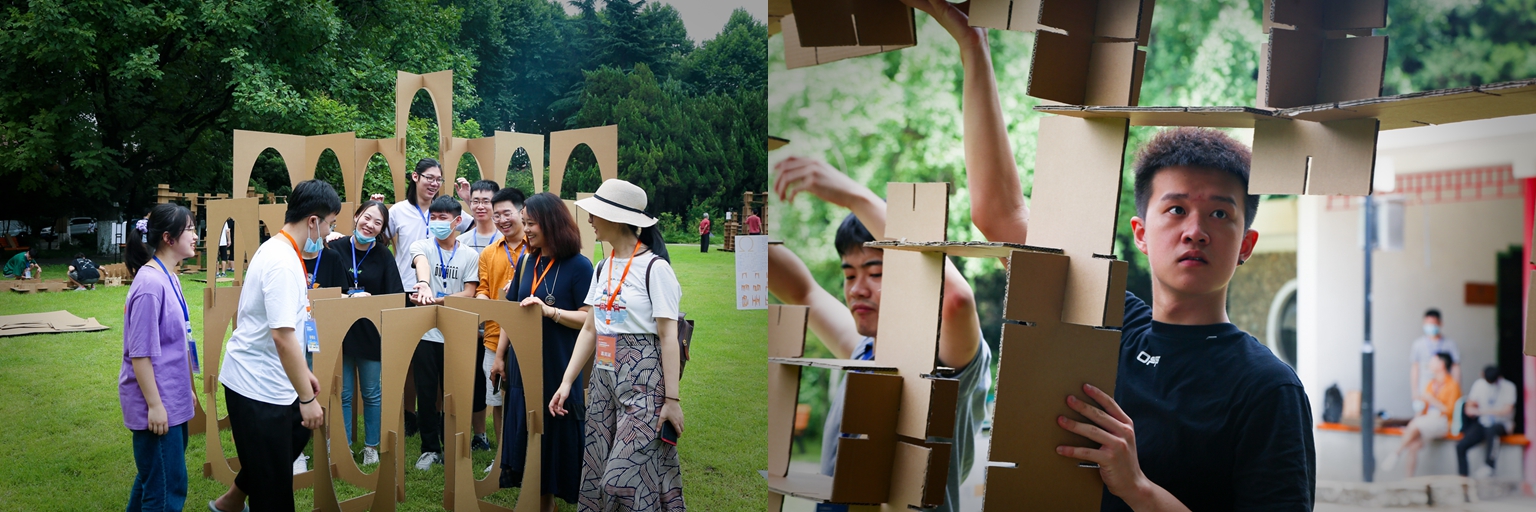 6月29日,2020西安交通大学人居建筑建造设计节在兴庆校区东花园举行。作为2020夏季小学期实践课程之一,本次建造设计节以“城市与建筑设计预见力——西安2100”为主题,要求仅使用箱纸板进行搭建,由单元体叠加而成,使结构自承重且具有稳定性,并在不破坏原有场地的基础上满足对话场所、建造清晰、结构稳定、经济适用、以人为本等五大条件,做到材料、空间、结构高度统一。