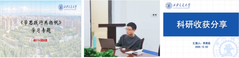新起点意味着新征程,要善于在危机中育新机,于变局中开新局,不断磨砺“真实力”、练就“强本领”。支部开展的《学思践行共扬帆》学习专题,旨在通过支部成员的科研学习、工作实践等方面的分享交流,增加支部成员间的了解、增强支部的凝聚力,同时,在分享交流讨论的过程中促进学习互相进步共向成长。支部成员李贵臣,就读于土木工程专业,目前已发表SCI 3篇。他通过对科研收获的分享,向大家展示了科研写作以及方法的心得体会和经验,并鼓励大家沉下心做科研,坚定信念信心,敢于啃硬骨头、不畏困难,要多思多想多看,开拓进取、奋发有为,为实现我国科技强国贡献力量。