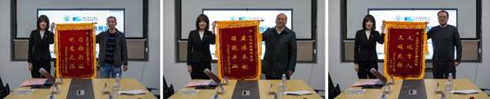 随后,支部党员代表向中国建筑西北设计研究院创意中心、陕建创新港项目部、西安交通大学党委宣传部敬赠锦旗并合影留念,与会全体同志起立并鼓掌致意。徐达表示,衷心希望我们能够以此为契机,以实际行动激发干劲激情,凝聚奋进力量,在日常科研工作中与三方单位进一步加强技术互动和业务交流,推进校企纵深合作,并在后续的党组织生活中继续开展更为广泛的校企共建、师生共建等形式的活动,热切期待各位领导老师再次莅临指导。