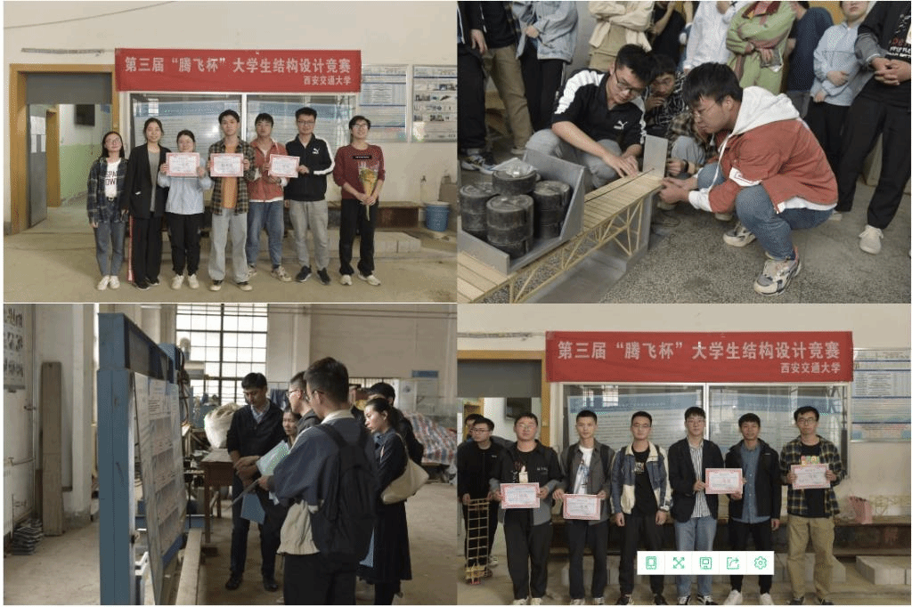 大学生结构设计竞赛是教育部确认的全国大学生九大学科竞赛之一。5月16日下午,由教务处、实践教学中心、校团委、人居学院、彭康书院、仲英书院、文治书院、崇实书院等联合举办的西安交通大学第三届“腾飞杯”大学生结构设计竞赛在兴庆校区土木工程厂房圆满落幕。共有分别来自人居学院、能动学院、机械学院、航天学院及越杰班的18支队伍,47名学生参加主、辅赛道决赛。