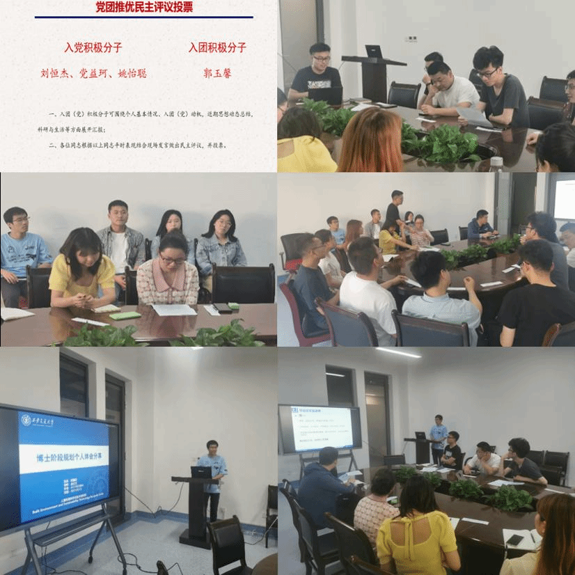 随后支部进行了群团组织推优,四位入党(团)积极分子分别围绕个人基本情况、入党(团)动机,并结合近期思想动态、科研与生活等方面展开汇报。支部成员也结合以上同志的平时表现踊跃发言讨论,做出了民主评议并投票。