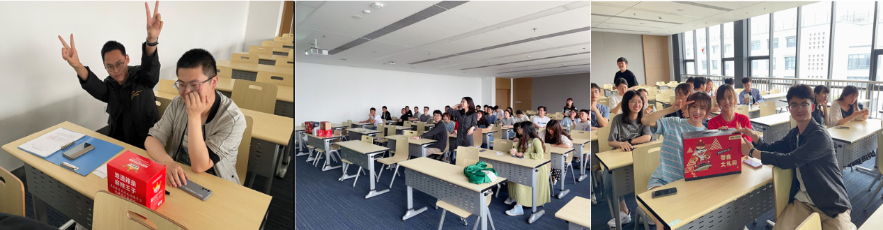 在“党、团史及心理知识竞赛”环节中,同学们以团队形式参与比赛,选题涵盖党章、团史、党的十九大报告、《论中国共产党历史》《毛泽东选集》和心理健康知识等方面,答题采取“抢答”模式。比赛现场如火如荼、气氛浓厚,同学们聚精会神地盯着多媒体屏幕、大脑也在飞速运转,每个同学都提前做好抢答的准备,为自己的队伍赢得更多的分数。竞赛中大家笑声与喝彩不断、氛围活泼融洽,经过大家的激烈角逐,有6支队伍获得 “零食大礼包”“夏日清凉风扇” “零食礼盒”等精美奖励。