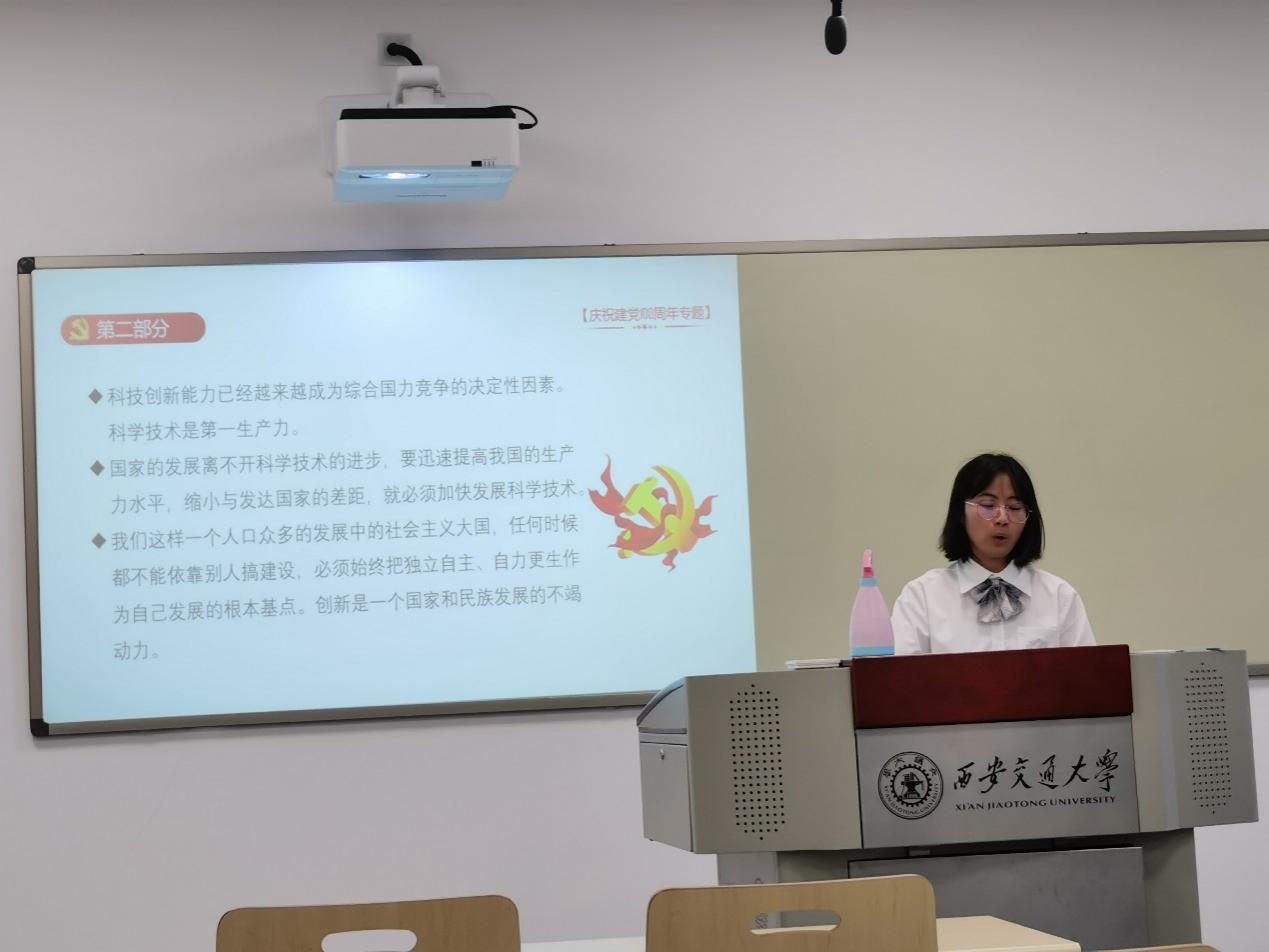 随后,任欢欢带领大家研读了《社会主义没有辜负中国》和《中国没有辜负社会主义》。她表示,从“只有社会主义才能救中国”到“社会主义没有辜负中国”,这一转变充分表现社会主义在我国的百年实践获得了非常伟大的成功,百年成功实践带给中国共产党的自信、坚毅和执着。而《中国没有辜负社会主义》一文,从党史的角度介绍了社会主义在我国的继承与发展,充分体现了中国共产党的百年历史就是一部不断推进马克思主义中国化的历史,就是一部不断推进理论创新、进行理论创造的历史。