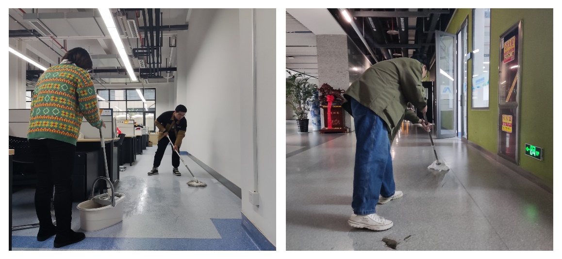 清扫过程中,团支委和各位团员紧密配合,表现出非常高的热情和积极性,学院楼内的自习室、走廊楼梯,学院门口、侧面等处都活跃着同学们忙碌的身影。清扫地面、捡拾垃圾、擦洗桌台,同学们干劲十足,相互配合。