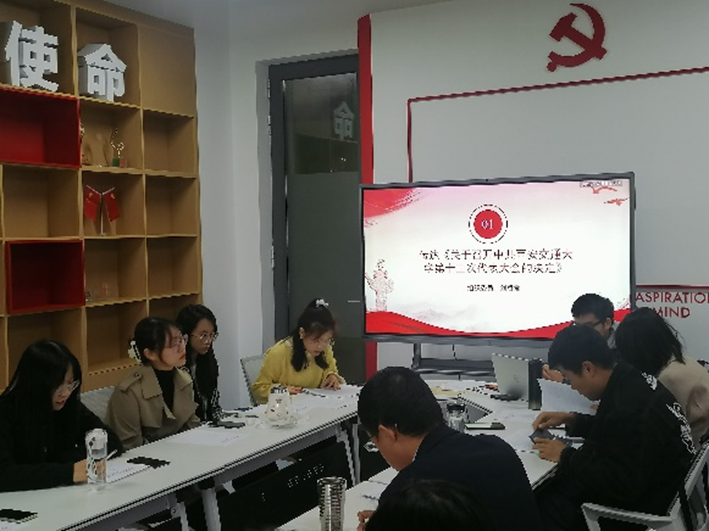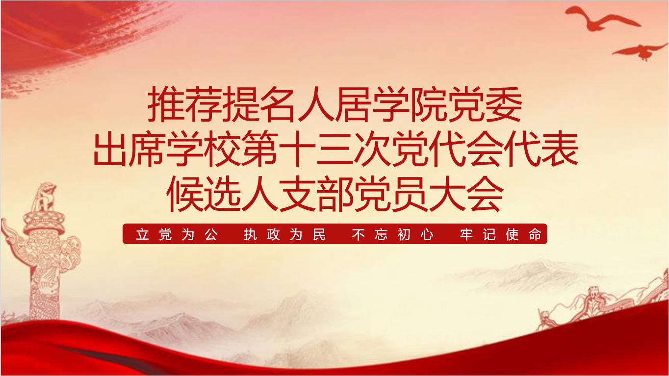 纪律委员卢泰儒同志汇报本次党员大会党员出席情况后,组织委员刘香君同志传达《关于召开中共西安交通大学第十三次代表大会的决定》文件精神,宣传委员闫洪祥同志宣读《关于做好中共西安交通大学第十三次代表大会代表选举工作的通知》,党支部副书记马若篮同志主持推荐出席学校第十三次党代会代表候选人。