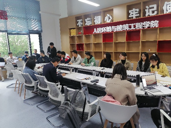 选举结束后,进行第二项——推选各专业党小组组长。党员同志先后做自我介绍、选举发言。最终,确定冯文萱同志为建筑学党小组组长,郭江豪同志为土木水利党小组组长,应晟钰同志为环境党小组组长。