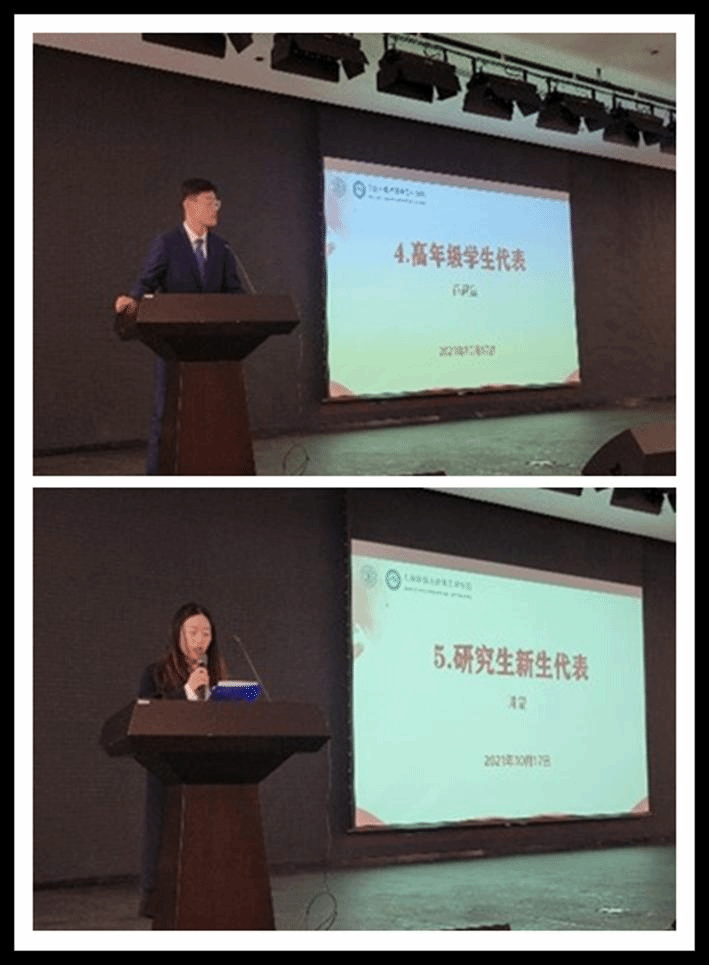 2020级学硕班党支部副书记、班长薛同宣作为研究生老生代表发言,分享了自己在学院学习生活的经验和感受。他表示,爱国奋斗是交大人永远的精神底色,学弟学妹们要扎实科研、勤于奋斗、敢于创新,以实际行动为科技强国、民族复兴的伟大实践持续注入交大担当。
