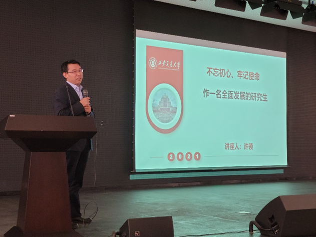 许领作题为《不忘初心,牢记使命,作一名全面发展的研究生》的专题报告,详细讲解了学院有关学籍学位的规章制度。他指出,西安交大的研究生应该具备的优良的学风,踏实认真、全面发展。他强调,全院学生要秉承追求卓越理念,瞄准科技自立自强使命事业,在未来民族复兴的征途上,贡献人居学子的新印记。