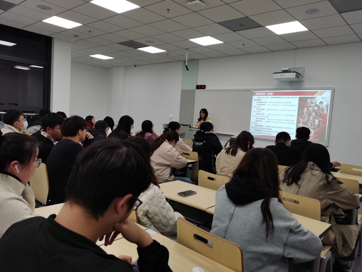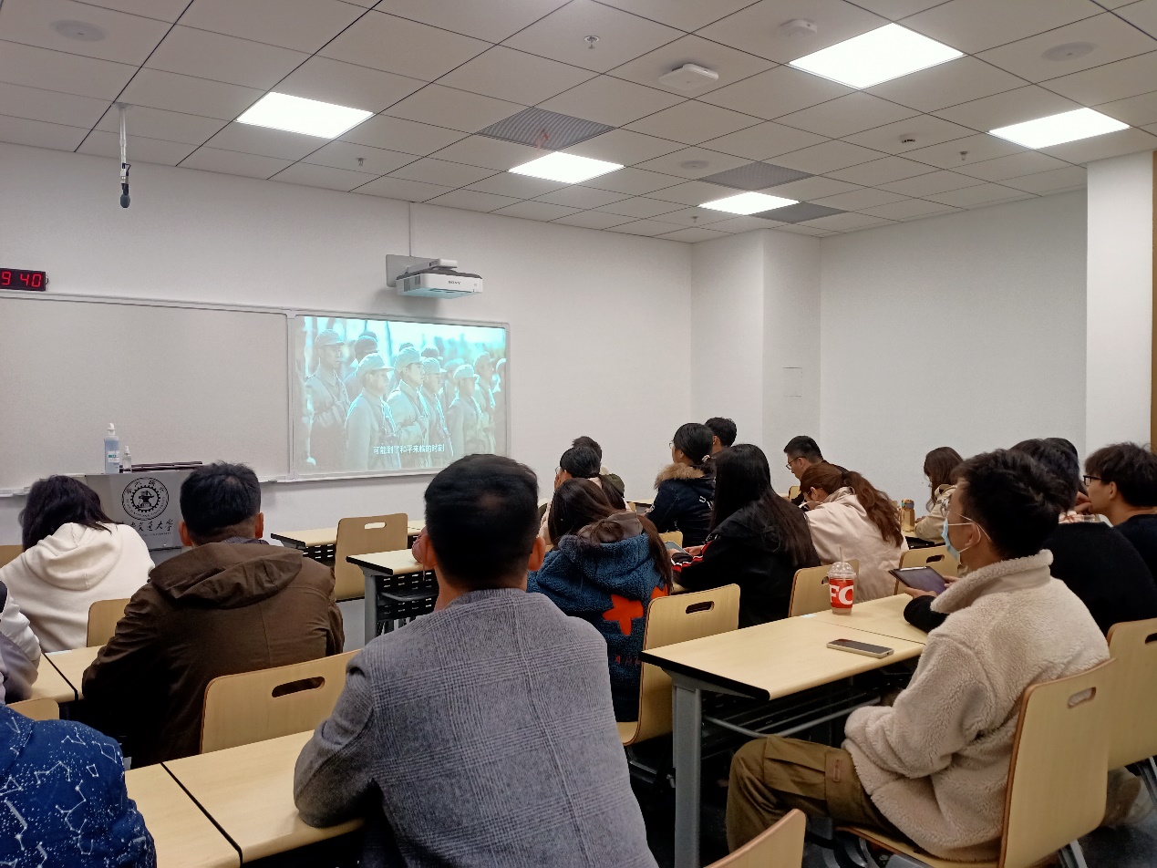 随后进行会议第二部分观看《功勋》及其纪录片。《功勋》是一部非常具有教育意义的主旋律剧作。这部剧共分为八个单元,分别讲述了我国首批获得“共和国勋章”的八位杰出人士的先进事迹,这八位人物分别是:李延年、于敏、申纪兰、黄光旭、屠呦呦、袁隆平、孙家栋、张富清,他们植根于祖国的各行各业,为了国家的强大和民族的复兴奉献出了自己的一切,他们是撑起共和国的民族脊梁、是我们中华儿女的杰出代表。本次组织生活会选择了李延年和申纪兰的故事片段,向同学们展示了两位人物的奋斗事迹,学习他们敢为人先、努力奋斗的精神。希望通过这次展示可以激发同学们的观看兴趣,让我们记住他们的名字和事迹、让我们学习和传承他们的精神。