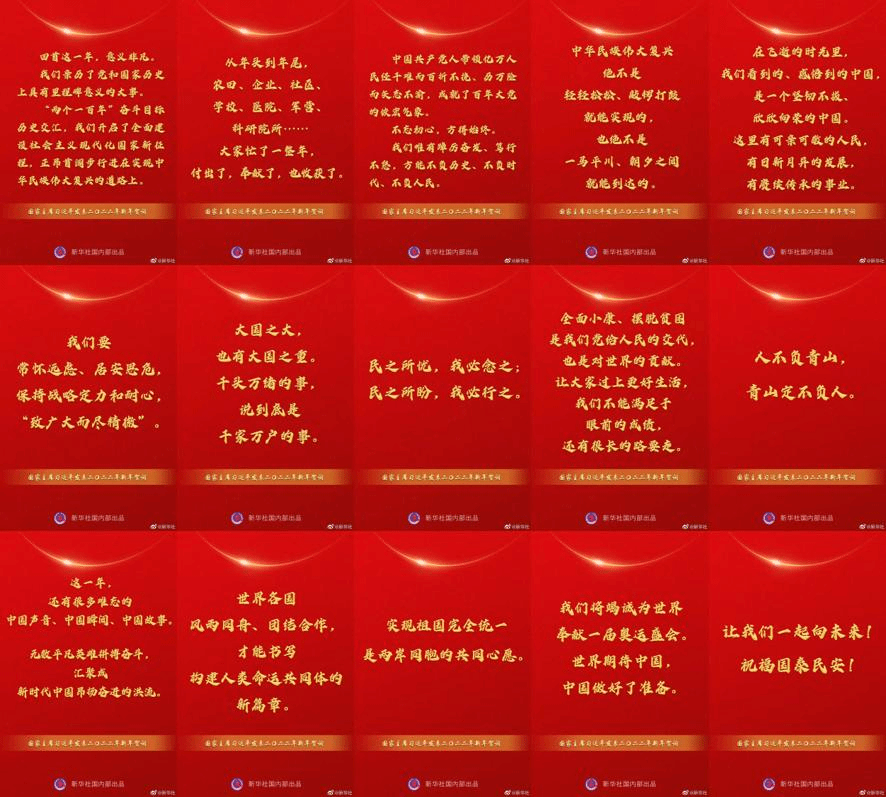 12月31日,习近平总书记发表了2022年新年贺词。回首这一年,我们亲历了党和国家历史上具有里程碑意义的大事。“两个一百年”奋斗目标历史交汇、庆祝中国共产党成立一百周年、党的十九届六中全会通过了党的第三个历史决议等等,无不昭示着共产党的蓬勃发展,除此之外还有很多难忘的中国声音、中国瞬间、中国故事也使我们印象深刻。我们有拼搏振奋,有温暖感动。我们坚信,在中国共产党的坚强领导下,我们一定能战胜任何困难,为实现中华民族的伟大复兴贡献我们每一个人的力量!