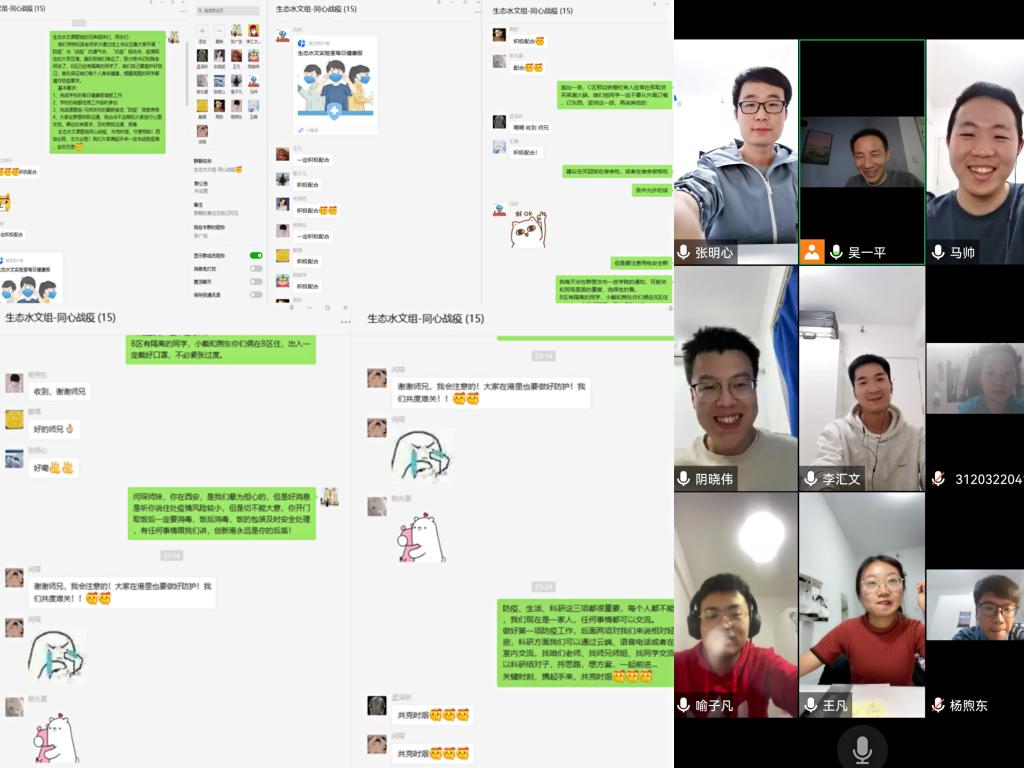 同时,生态水文团队在吴一平教授的带领下勠力同心、共同战疫。团队张广创建立“生态水文组-同心战疫”学生微信群,线上提醒疫情防控核酸检测,线下保障团队基本科研需求,此外心理辅导及时沟通,确保课题组无人掉队。阴晓伟、周彤等作为学院志愿者前往弘润楼搬运抗疫物资、为同学们协调获取科研资料;马帅建立团队健康统计表,每日核查。他们在互帮互助、积极奉献、携手抗疫的路上共同前进。
