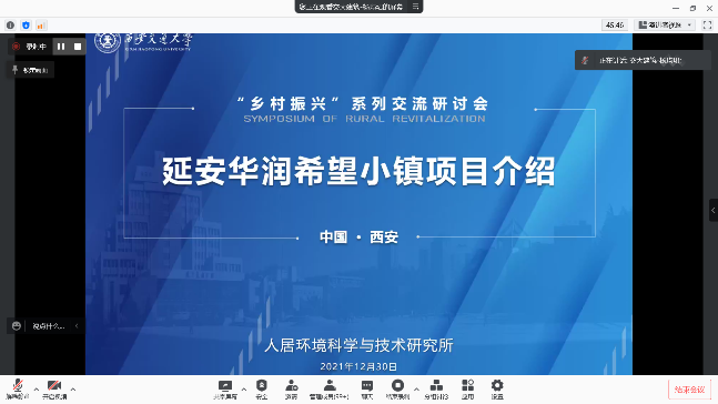 2021年12月30日晚,人居环境科学与技术研究所联合西安中易建科技有限公司(简称中易建科技)共同举办“乡村振兴”系列交流研讨会第一次讨论,线上参会师生和邀请嘉宾超过百人,是人居学院抗击疫情的又一项重要活动。