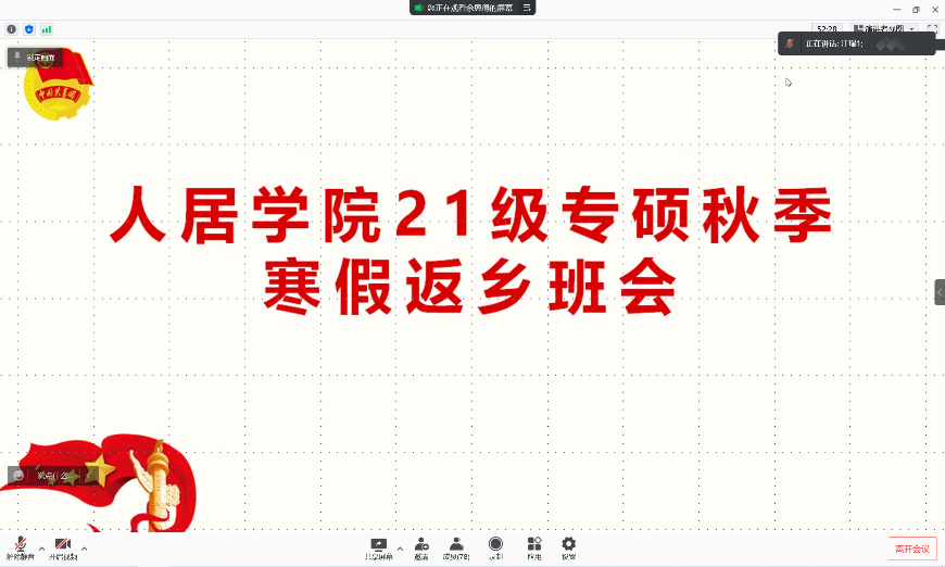 2022年1月20日,人居学院2021级专硕班于线上召开一月团组织生活会暨返乡班会。