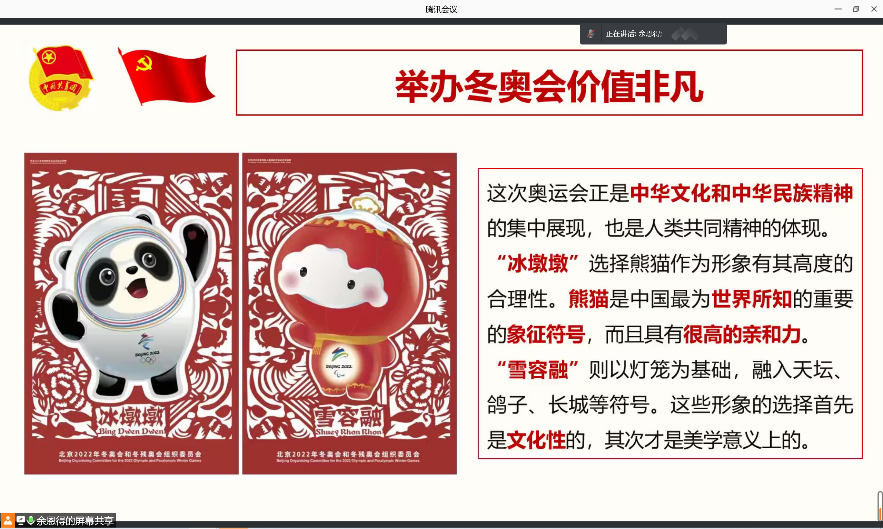 首先,会议由团支部书记余恩得同志主持召开团支部一月组织生活会。分别学习总书记二〇二二年新年贺词、北京冬奥会的历史意义和文化价值和全校师生疫情防控倡议书。