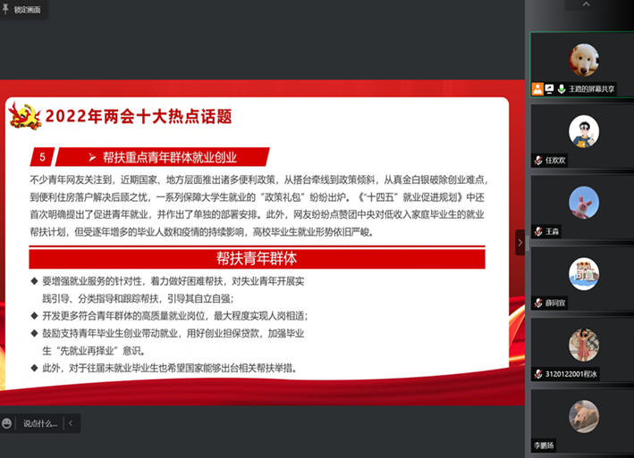 人居学院2020级学硕团支部于3月28日通过线上召开团支部团员大会,会议传达了“全国两会会议精神”以及讨论接收优秀青年入团工作。支部共35名团员参加此次会议,会议由团支部支部书记郭瑾萧主持。