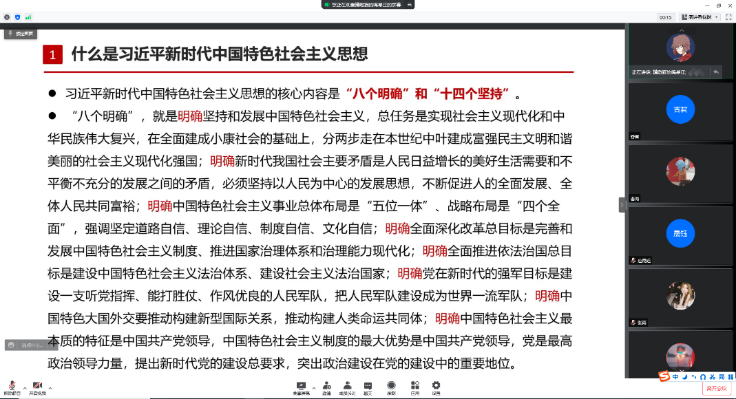 季静雅说到:“习近平新时代中国特色社会主义思想源自实践,又指导实践,是从新时代中国特色社会主义全部实践中产生的理论结晶,是推动新时代党和国家事业不断向前发展的科学指南。”