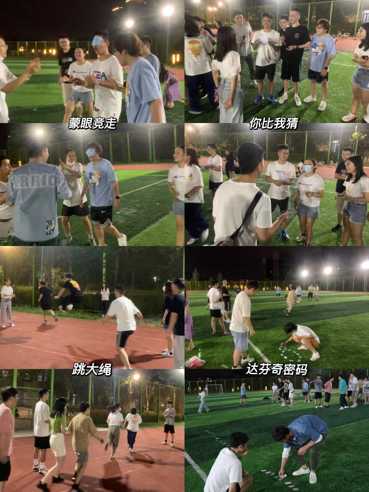6月9日晚,活动在创新港举办, 2021级专硕班党员、团员在内的全体研究生参与此次活动。活动分为四个小组同时进行,依次完成“你比我猜”、“跳大绳”、“暖场活动(班长说)”、“蒙眼竞走”、“达芬奇密码”以及“合唱”六个环节,每项活动中采取竞技模式,单项活动的第一名和第二名可以获得“套圈”游戏奖励机会,并获取相应奖品。