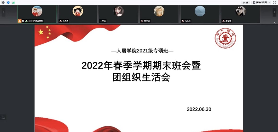 2022年6月30日,人居学院2021级专硕班开展2022年春季学期期末班会暨团组织生活会。支部共76名同学参加此次会议。