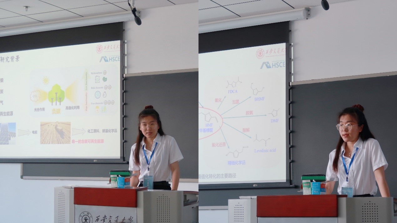 此次研究生学术创新论坛包含口头汇报和展板展示两大交流形式,支部成员刘香君作题为《半导体材料在光催化重整生物质及其衍生物中的应用》的口头报告,宋丹、胡文睿、杨瑶林等六位同学参与了展板展示交流。