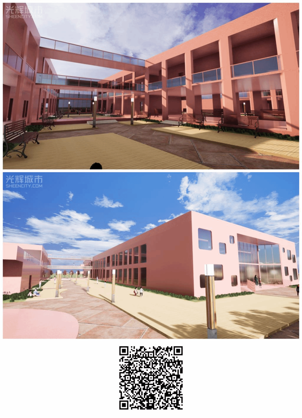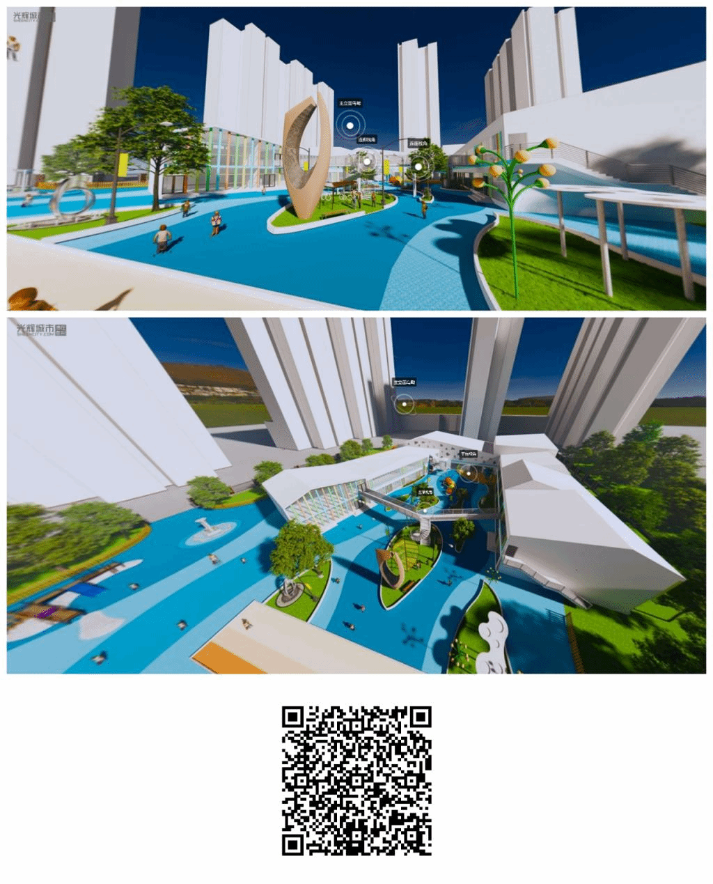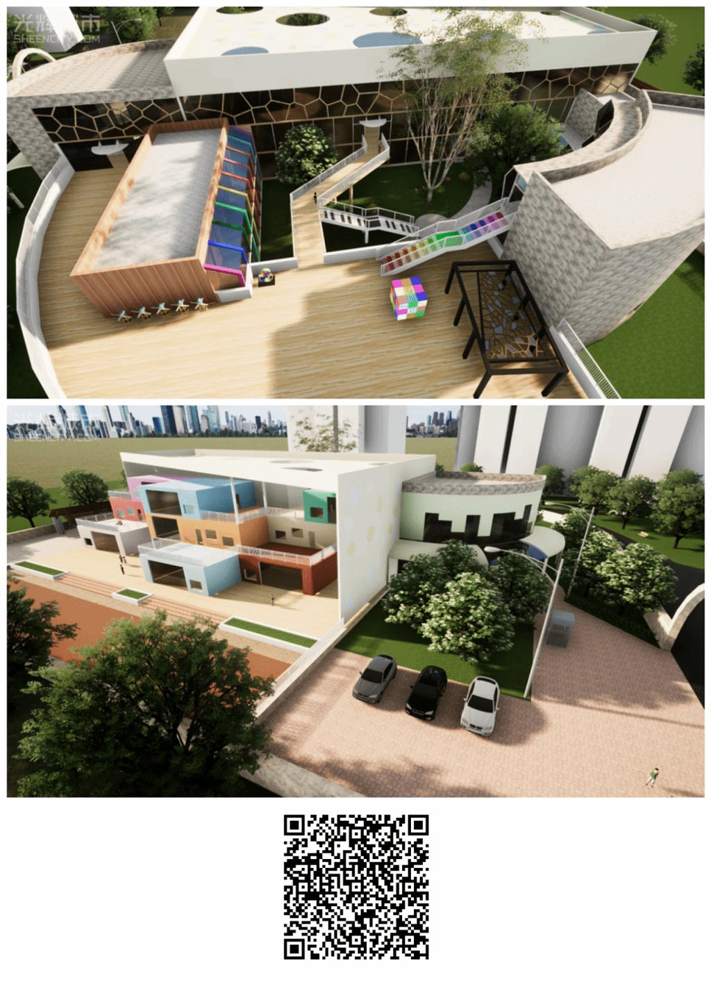 此次VR作业展是2021-2022年第二学期,建筑学系本科二年级建筑设计课程“幼儿园建筑设计”依托“建筑设计虚拟教学实验室”开展的VR建筑认知与体验学习。学生在大作业完成后,将其作业成果布置于中国西部科技创新港VR模型中,制作形成“幼儿园建筑设计VR作业展”。参观者可使用手机扫描二维码,进入虚拟现实的场景模型,参观展出作业。本展览将观展方式从传统的浏览二维图片优化为实时场景体验,为参观者提供更为沉浸的观展感受。